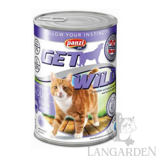 A Panzi GetWild Cat FISH&APPLE egy teljes értékű felnőtt macskák számára készült eledel hallal és almával. A HAL könnyen emészthető hús, kiváló - OMEGA-3, OMEGA-6 zsírsavakban gazdag - állati fehérjeforrás, míg az ALMA természetes forrása az antioxidánsoknak. A válogatott alapanyagoknak köszönhetően minden olyan összetevőt tartalmaz, melyre Kedvencének mindennapi táplálkozása során szüksége van. Összetétel: Hús és állati származékok (min. 4% hal), alma (min. 4%), gabonafélék, ásványi anyagok. Analitikai összetevők: nyersfehérje 7 %, nyers olajok és zsírok 3,5%, nyershamu 2,5%, nyersrost 0,3%, nedvességtartalom 80%.