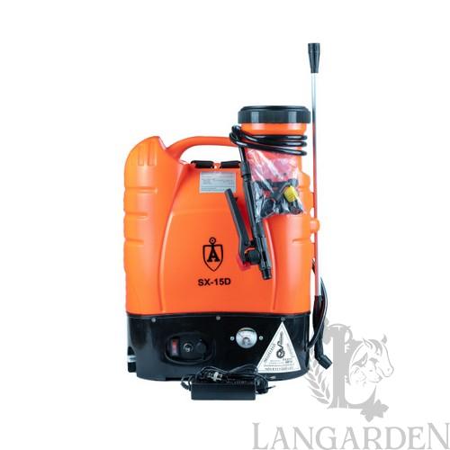 Akkumulátoros háti permetező. Motoros, kényelmesen és biztonságosan használható. Akkumulátor: 12V, 10 Ah beépített töltöttségjelzővel . Egy feltöltés kb. 4 órás üzemidőt jelent! Permetlétartály: 15 liter.